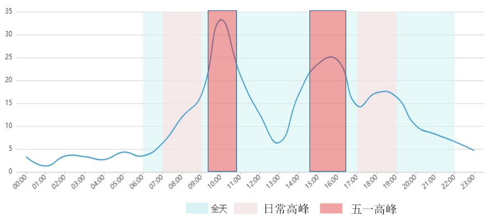 重点关注市区重点高速出入口、踏青旅游景点、大型商超区域周边主要道路沿线交通流量数据,形成交通拥堵运行态势。2020年5月1日全市平均拥堵里程14.34公里,上午高峰平均拥堵里程28公里,最高峰出现在09:45;下午高峰平均拥堵里程23公里,最高峰出现在15:08。