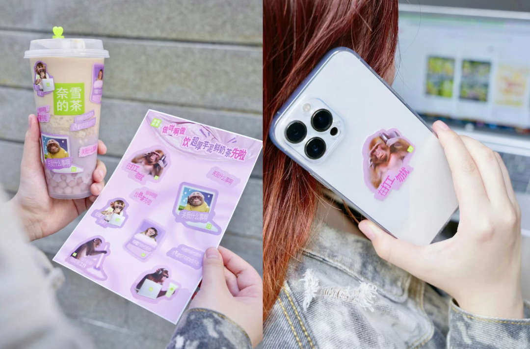 作为2023年备受关注的赛道,茶饮行业已经加速进入了价格、原料、营销同时开“卷”的阶段,尤其在“卷联名”上,如果说联名奢侈品牌、经典IP的动作需要长线策划,那联名时下流行的表情包似乎成了低成本高曝光的捷径,最近的案例就是奈雪和“吗喽”表情包的联动。一句“吗喽的命也是命”,让这个自带方言色彩的称谓,和打工人的“心酸”情绪意外同频,“吗喽文学”“吗喽之歌”“大型吗喽纪录片”等网友玩梗之作更是自带话题热度。