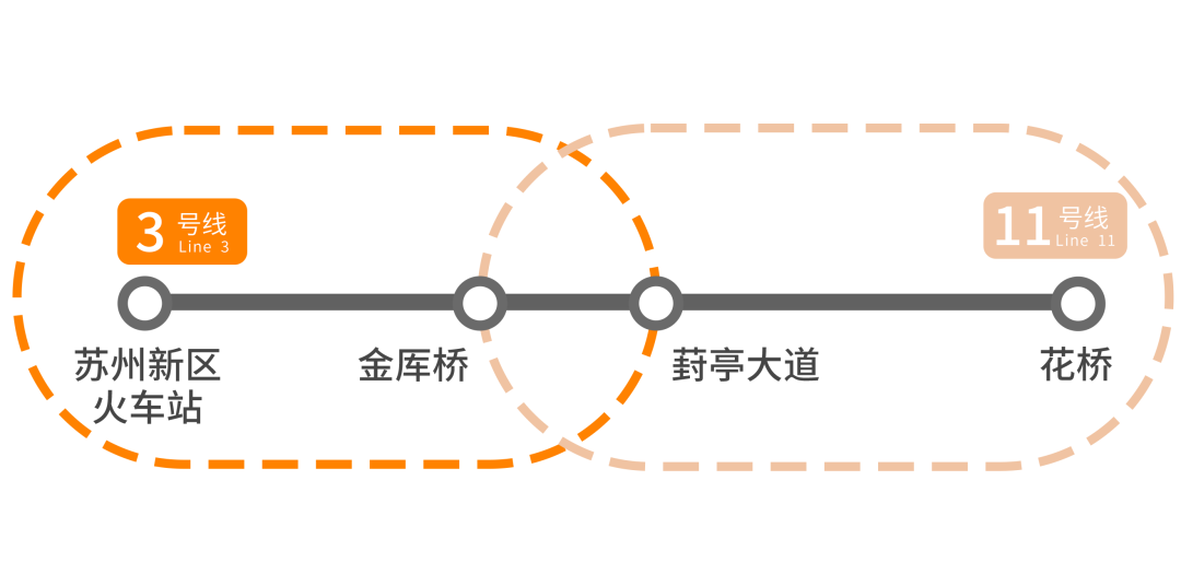 一个交路为苏州新区火车站至葑亭大道站,另一个为金厍桥站至花桥站,金厍桥站至葑亭大道站两个交路共线运营。