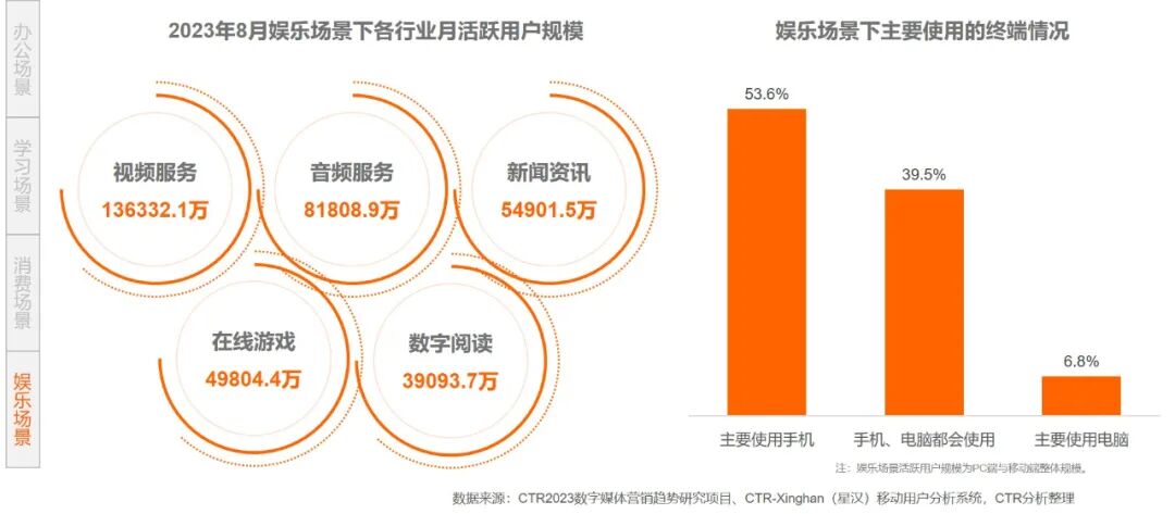 数据来源:除网络公开数据资料外,本报告使用的数据资料主要来自CTR2023数字媒体营销趋势研究项目广告主定量调研、 CTR2023数字媒体营销趋势研究项目广告主定性深访、 CTR2023数字媒体营销趋势研究项目用户定量调研、CTR2023年广告主营销趋势调查、CTR-Xinghan(星汉)移动用户分析系统。