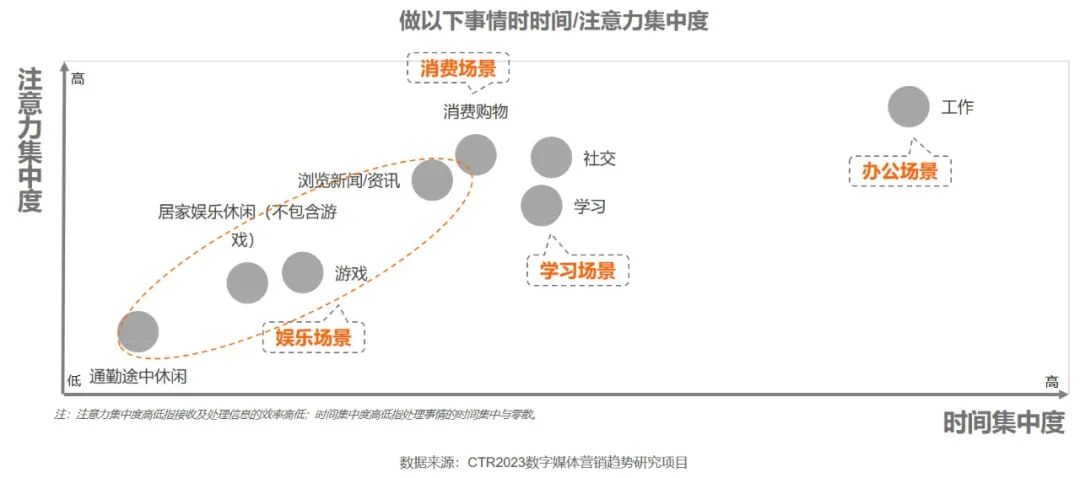 用户与场景紧密结合,不同场景对应的时间与注意力有所差别