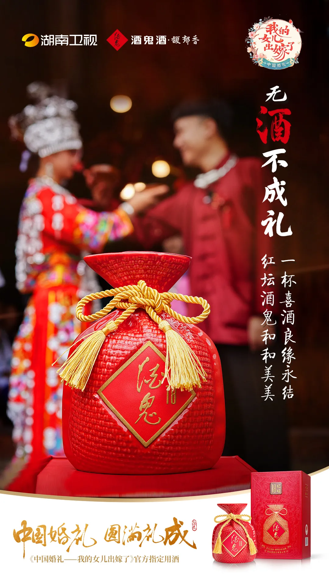 《中国婚礼》——有喜事,喝红坛酒鬼酒现代管理学之父彼得·德鲁克认为,企业的目标是创造客户,因此企业有且只有两个基本功能:营销和创新。而酒鬼酒对二者的结合早已超出了酒企营销的传统认知:借爆款综艺《中国婚礼》和多维联动营销,酒鬼酒不仅为红坛酒鬼酒创造了更大的可能,也为行业打开了全新的营销创新想象空间。